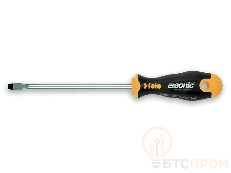 Отвертка Felo шлицевая SL 8,0х1,2х300 предназначена для монтажно-демонтажных работ с крепежом сечения SL 8,0 в труднодоступных местах за счет длинного стержня 300 мм. Рукоятка ERGONIC - первая в мире бесшовная рукоятка, которая адаптируется под руку любого пользователя, снижает нагрузку и утомляемость, а также увеличивает комфорт и максимальный крутящий момент. Продуманный дизайн рукоятки не позволяет инструменту скатываться с поверхности. Внешнее покрытие рукоятки имеет высокую устойчивость к царапинам и ГСМ. Отверстие в рукоятке позволяет для удобного хранения на стене, а также применять инструмент в качестве дополнительного рычага. На верхней части рукоятки указан тип шлица. Стержень изготовлен из высококачественной инструментальной стали, износостойкость и прочность которой превышает технические требования европейских стандартов DIN и ISO.