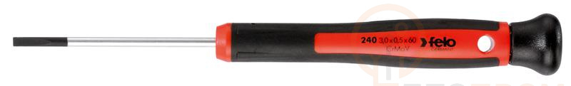 Отвертка шлицевая плоская для точных работ 2,5X0,4X150 Felo 24025560 предназначена для с мелким крепежом. Идеально подходит для монтажа/демонтажа оргтехники. Стержень изготовлен из хром-молибден-ванадиевой стали, что делает изделие долговечным и защищает от коррозии.