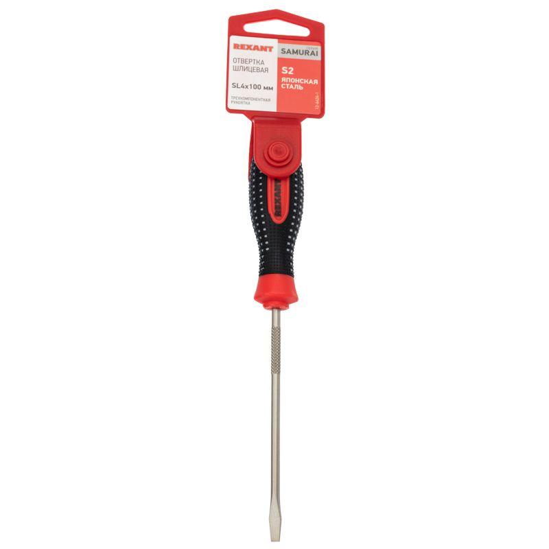 –Отвертка шлицевая SL 4х100мм трехкомпонентн. рукоятка сталь S2 Rexant 12-6424-1