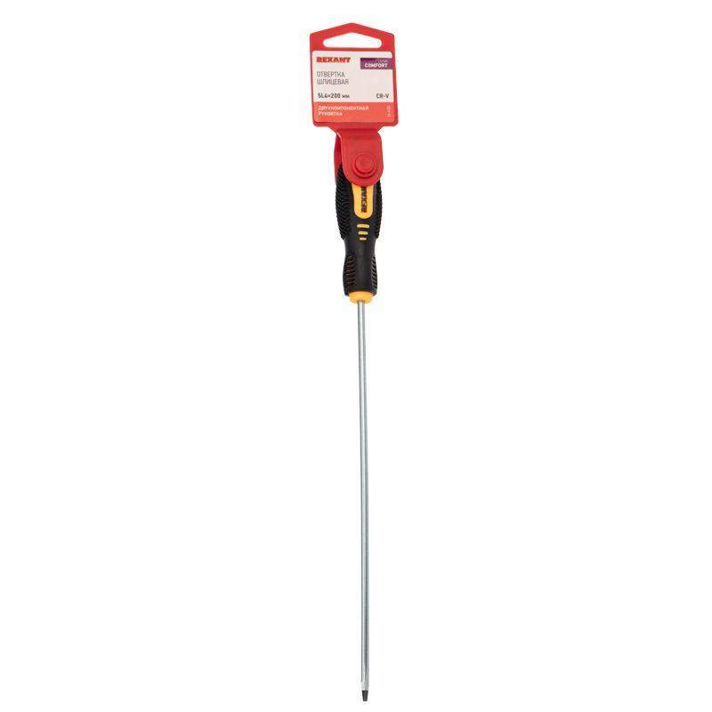 Отвертка шлицевая REXANT используется для монтажа и демонтажа резьбовых соединений (шурупов, саморезов), имеющих на головке прямой паз. Оснащена эргономичной двухкомпонентной рукояткой, которая предотвращает скольжение в ладони и обеспечивает более комфортную работу. Инструмент обладает стержнем, который изготовлен из высококачественной хромованадиевой стали, характеризующейся высокой стойкостью к коррозии. Благодаря оксидированному намагниченному наконечнику крепежная деталь не упадет при извлечении или установке. В основании инструмента предусмотрено отверстие для его подвеса.