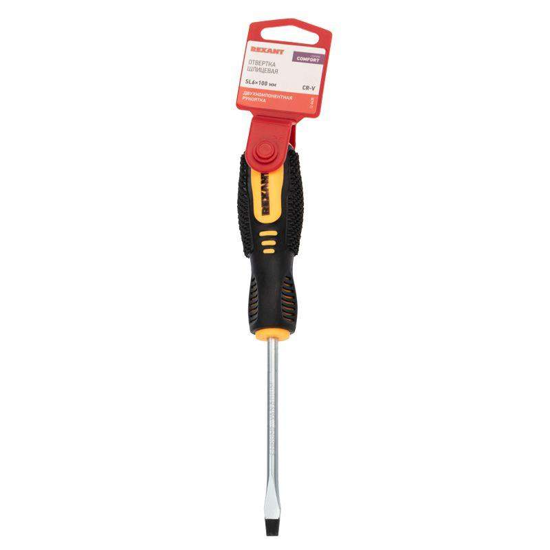–Отвертка шлицевая SL 6х100мм двухкомпонентн. рукоятка Rexant 12-6430