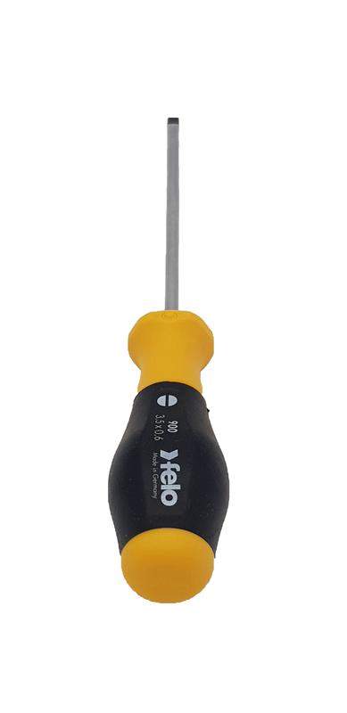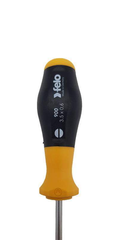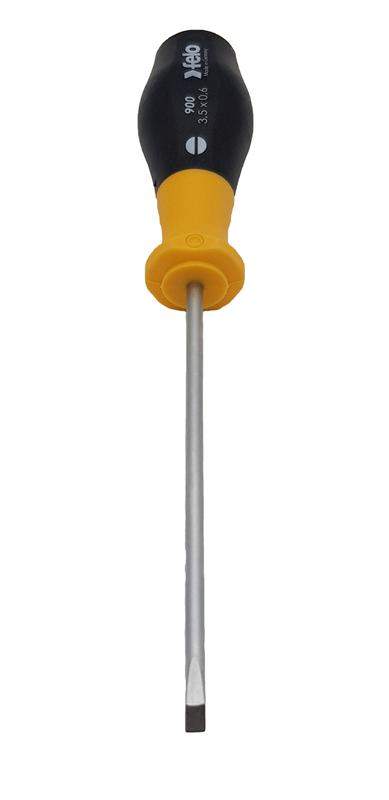 Отвертка шлицевая серии 900 предназначена для работ с крепежом SL 3,5х0,6. Эргономичный дизайн рукоятки и противоскользящий материал (Soft Grip) помогает обеспечить наибольшую передачу усилия. Специальный дизайн двухкопонентной рукоятки не позволяет инструменту скатываться с поверхности. Лезвия изготовлены из специальной хромомолибден-ванадиевой стали для достижения наилучшего результата при работе! Точная посадка в крепеж обеспечивается за счет черного наконечника (Black-Tip).