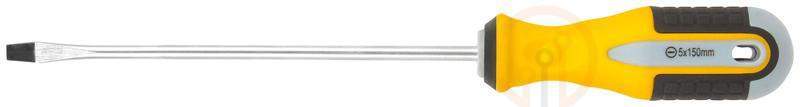 Отвертка FIT IT ‘’Старт’’ предназначена для завинчивания и отвинчивания крепёжных изделий с резьбой. Стержень отвертки изготовлен из хромованадиевой стали и выдерживает высокие механические нагрузки. Точная геометрия наконечника позволяет эффективно работать с соответствующим типом крепежа. Магнитный наконечник способствует удержанию крепежных элементов и их извлечению из труднодоступных мест. Трехкомпонентная рукоятка с текстурными резиновыми вставками не скользит в руке во время работы. В рукоятке предусмотрено отверстие для удобного хранения.