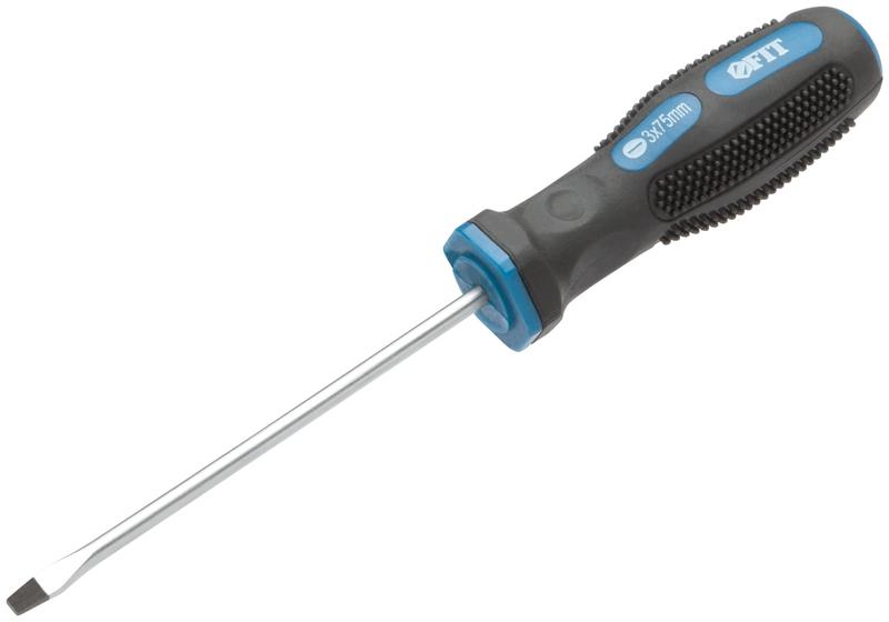 Отвертка FIT IT серии «Универсал» предназначена для завинчивания и отвинчивания крепёжных изделий с резьбой. Стержень отвертки изготовлен из хромованадиевой стали и выдерживает высокие механические нагрузки. Точная геометрия наконечника позволяет эффективно работать с соответствующим типом крепежа. Магнитный наконечник способствует удержанию крепежных элементов и их извлечению из труднодоступных мест. Эргономичная прорезиненная рельефная рукоятка не скользит в руках.