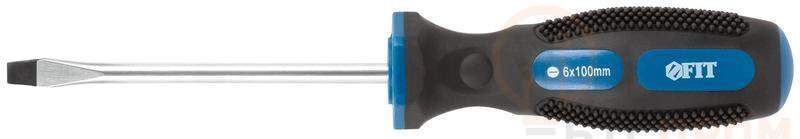 Отвертка FIT IT серии «Универсал» предназначена для завинчивания и отвинчивания крепёжных изделий с резьбой. Стержень отвертки изготовлен из хромованадиевой стали и выдерживает высокие механические нагрузки. Точная геометрия наконечника позволяет эффективно работать с соответствующим типом крепежа. Магнитный наконечник способствует удержанию крепежных элементов и их извлечению из труднодоступных мест. Эргономичная прорезиненная рельефная рукоятка не скользит в руках.