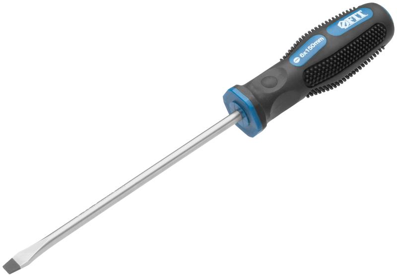 Отвертка FIT IT серии «Универсал» предназначена для завинчивания и отвинчивания крепёжных изделий с резьбой. Стержень отвертки изготовлен из хромованадиевой стали и выдерживает высокие механические нагрузки. Точная геометрия наконечника позволяет эффективно работать с соответствующим типом крепежа. Магнитный наконечник способствует удержанию крепежных элементов и их извлечению из труднодоступных мест. Эргономичная прорезиненная рельефная рукоятка не скользит в руках.