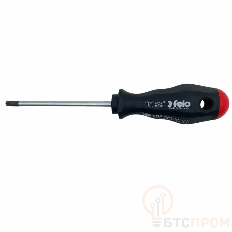 Отвертка FELO 50830340 с жалом Tx 30 (Torx) — профессиональный инструмент для точного монтажа и демонтажа крепежных элементов с соответствующей звездообразной головкой. Стержень изготовлен из высоколегированной хромованадиевой стали и закален до высокой твердости, что обеспечивает долговечность и устойчивость к деформациям и износу.