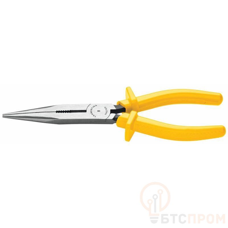 Длинногубцы предназначены для ремонта электрики и идеально подходят для телекоммуникацонных работ из-за своего удлиннённого носа. Пригодны как для профессионального, так и для домашнего использования. Инструмент отлично прорезает провода, захватывает предметы и надёжно удерживает их.Длинногубцы, обладающие полированным шарниром, изготовлены из специальной углеродистой стали с фосфатированием, что вкупе со специальной закалкой на режущей кромке гарантирует более высокую стойкость товара.Изделие можно использовать во время работы с электричеством с максимальным напряжением до 1000 В переменного тока.Эргономичная форма ручек длинногубцев вместе с мягким их открыванием значительно облегчает работу и повышает комфорт от взаимодействия с инструментом.