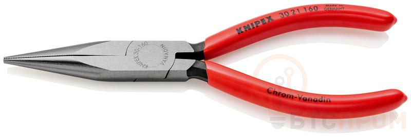 Длинногубцы плоскокруглые рифленные губки 50мм L-160мм обливные рукоятки черн. Knipex KN-3021160 фото в каталоге от BTSprom.by