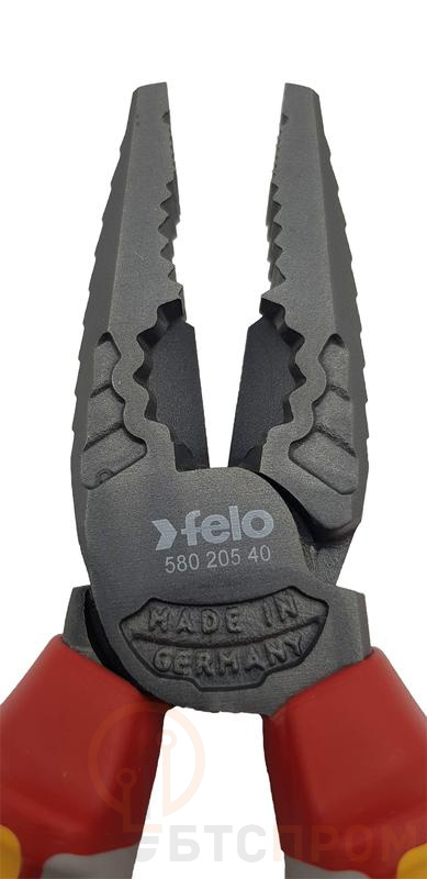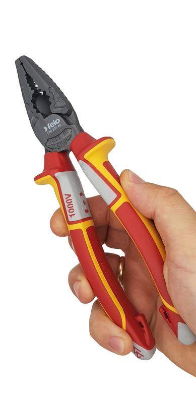 Диэлектрические пассатижи Felo 205 мм применяются в электромонтажных работах под напряжением до 1000 Вольт для зажима и удержания проводов и деталей различных форм. Точно зазубренные губки обеспечивают надежный захват детали, объекта. Длительный срок службы инструмента обусловлен специальным черным покрытием, который защищает его от коррозии. Эргономичный дизайн двухкомпонентной рукоятки обеспечивает ее оптимальное положение в руке, а форма ручек обеспечивает безопасность хвата. Мягкое покрытие ручек SoftGripp делают работу более комфортной. Выкованы из специальной инструментальной стали и закалены индукционным методом до твердости 60/64 HRC.
