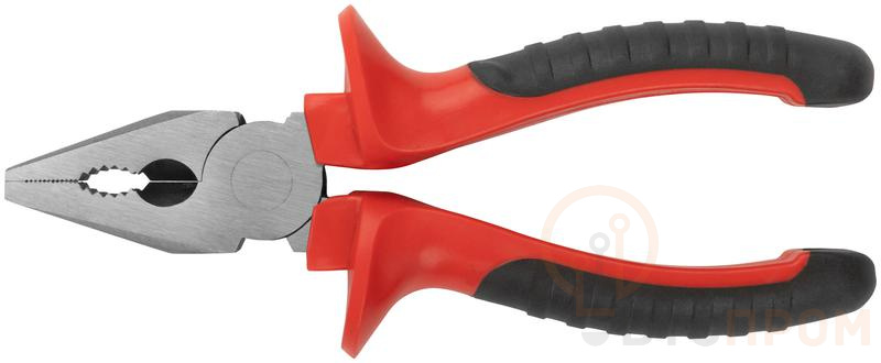 Плоскогубцы комбинированные КУРС серия «Оптима» предназначены для захвата, манипулирования и перекусывания проволоки, проводов и деталей из различных материалов. Закалка рычагов упрочняет конструкцию. Дополнительная высокочастотная закалка режущих кромок позволяет эффективно перекусывать металлическую проволоку. Ребристая форма губок предотвращает проскальзывание зажимаемых деталей. Губки плотно смыкаются за счет полировки рабочих частей. Эргономичные ручки с упорами обеспечивают надежный хват.