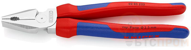 Комбинированные плоскогубцы Knipex KN-0205225 — это профессиональный инструмент повышенной мощности, созданный для выполнения самых сложных задач. Длина изделия составляет 225 мм, что обеспечивает высокое передаточное усилие и комфорт при работе.