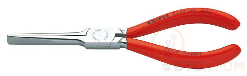 Плоскогубцы Утконосы Knipex KN-3303160 — профессиональный инструмент для точных монтажных работ. Уникальная конструкция губок размером 3×9×55 мм позволяет работать в труднодоступных местах и обеспечивает надежный захват деталей различной формы.