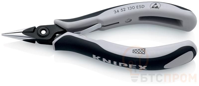 Плоскогубцы захватные прецизионные ESD плоско-круглые губки с лазерной крестовой насечкой L-130мм антистатические Knipex KN-3452130ESD