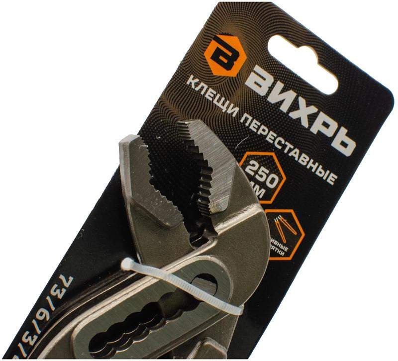 Клещи переставные Вихрь 73/6/3/4 – это универсальный и надежный ручной инструмент для выполнения широкого спектра слесарно-монтажных работ. Благодаря переставному механизму, они позволяют плавно регулировать ширину раскрытия губок, обеспечивая надежный захват деталей, гаек и болтов различного размера.
