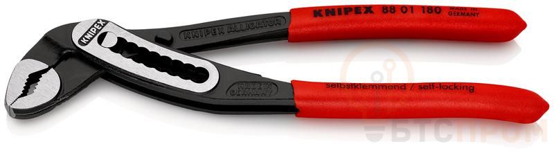 Клещи переставные 42мм (1 1/2дюйм) под ключ 36мм L-180мм Cr-V обливные рукоятки сер. Knipex KN-8801180SB