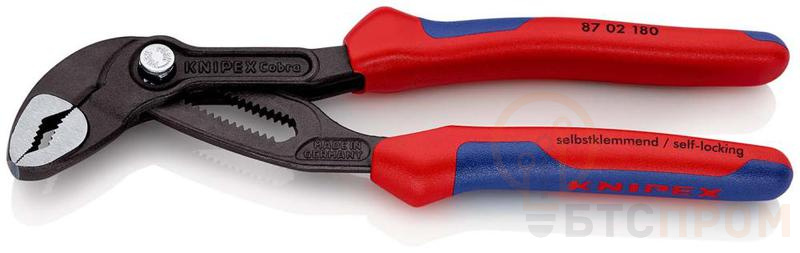 Клещи переставные с фиксатором 42мм (1 1/2дюйм) под ключ 36мм L180мм Cr-V двухкомпонентн. рукоятки сер. Knipex KN-8702180
