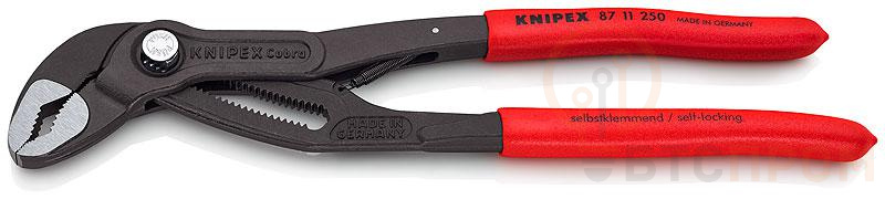 Клещи переставные с фиксатором и с пружиной 50мм (2дюйм) под ключ 46мм L-250мм Cr-V обливные рукоятки сер. Knipex KN-8711250