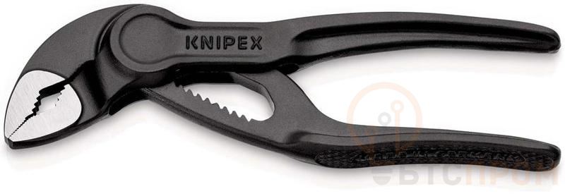 Клещи переставные сантехнические с фиксатором 28мм (1дюйм) под ключ 24мм L-100мм Cr-V блистер сер. Knipex KN-8700100BK