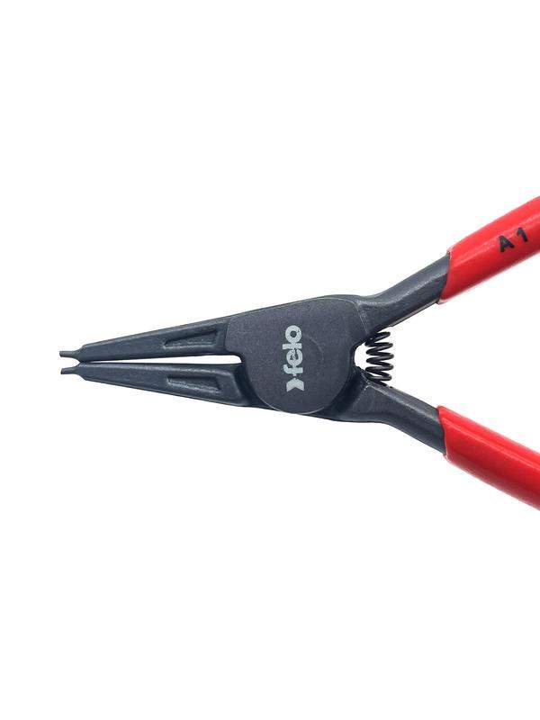 Инструмент оснащен двумя прямыми рабочими концами, которые надежно фиксируются в ушках кольца, предотвращая соскальзывание и повреждение детали. Эргономичные двухкомпонентные рукоятки с противоскользящим покрытием гарантируют удобный и уверенный хват, снижая усталость при интенсивной работе.