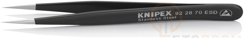 Пинцет ESD захватный прецизионный гладкие губки тонкие кончики антистатический L-110мм хром. Knipex KN-922870ESD