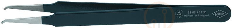 Пинцет ESD прецизионный Knipex KN-920878ESD — это антистатический инструмент, созданный для деликатных работ с электронными компонентами. Общая длина составляет 120 мм. Его ключевая особенность — гладкие изогнутые под углом 45 градусов губки, которые обеспечивают превосходный обзор рабочей зоны и точный захват мелких деталей.