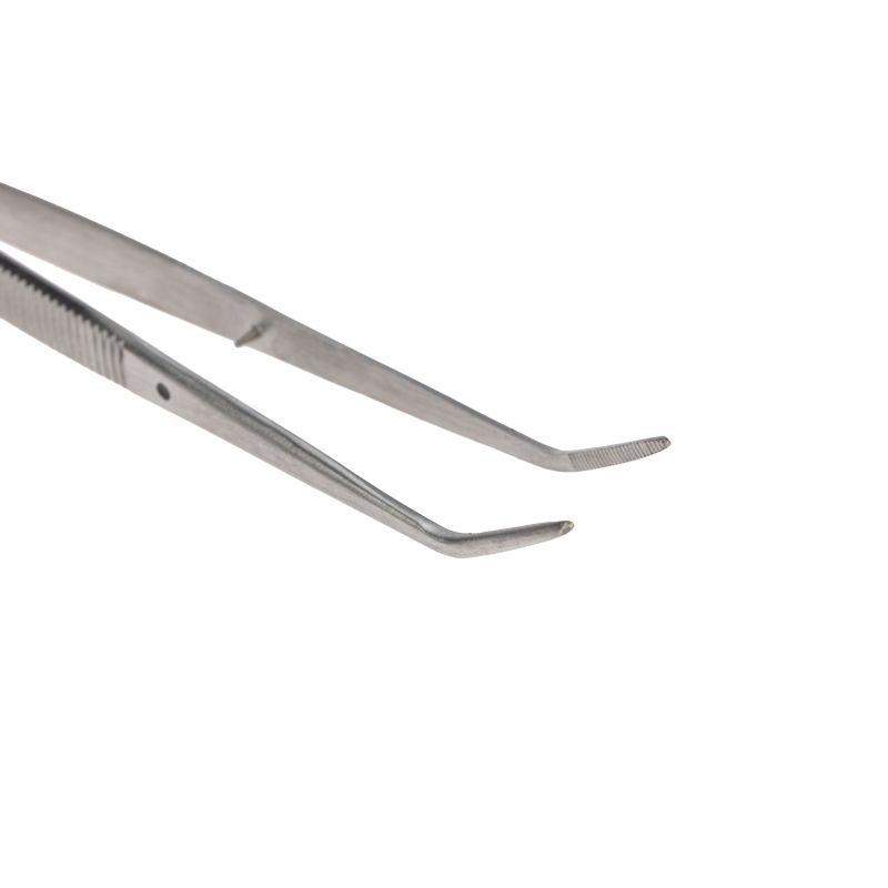 Стальной пинцет REXANT используется для проведения манипуляций с различными небольшими предметами и деталями, такими как крепеж, шестеренки, марки, драгоценные камни и пр. Широко применяется в паяльных и ручных работах, сборочном производстве, филателии, ювелирном деле, робототехнике, промывке золота и т. д. Инструмент обладает антимагнитными свойствами. Изготовлен из долговечной медицинской стали, устойчивой к поражению коррозией. Рифление на внешней стороне корпуса исключает скольжение пальцев во время работы. Предусмотрен фиксатор положения, который снижает напряжение с руки. Изогнутые заостренные рифленые концы позволяют производить работы в труднодоступных местах. Оптимальная длина и небольшой вес пинцета делают работу наиболее комфортной.