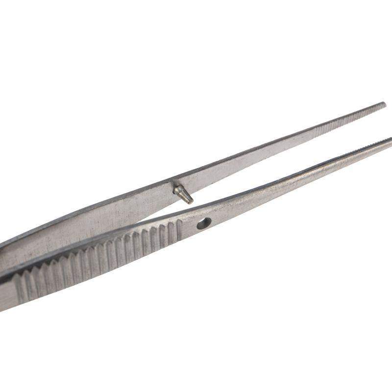 Стальной пинцет REXANT используется для проведения манипуляций с различными небольшими предметами и деталями, такими как крепеж, шестеренки, марки, драгоценные камни и пр. Широко применяется в паяльных и ручных работах, сборочном производстве, филателии, ювелирном деле, робототехнике, промывке золота и т. д. Инструмент обладает антимагнитными свойствами. Изготовлен из долговечной медицинской стали, устойчивой к поражению коррозией. Рифление на внешней стороне корпуса исключает скольжение пальцев во время работы. Предусмотрен фиксатор положения, который снижает напряжение с руки. Прямые заостренные рифленые концы позволяют надежно удерживать детали и производить работы, требующие высокой точности. Оптимальная длина и небольшой вес пинцета делают работу наиболее комфортной.