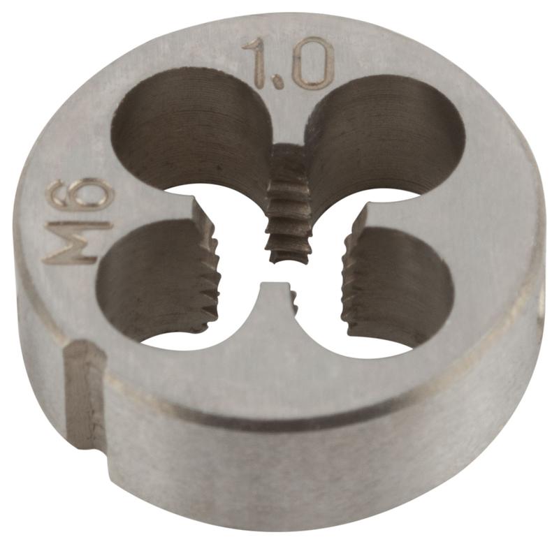 Плашка метрическая FIT IT предназначена для нарезания внешней резьбы на изделиях из стали и цветных металлов. Направление резьбы — правое. Плашка изготовлена из закаленной легированной стали с твердостью 58 HRC и обладают высокой износостойкостью. Имеет класс точности 6G и не требуют дополнительной чистовой доводки. На каждую плашку нанесена маркировка размера и шага резьбы с целью быстрой идентификации.