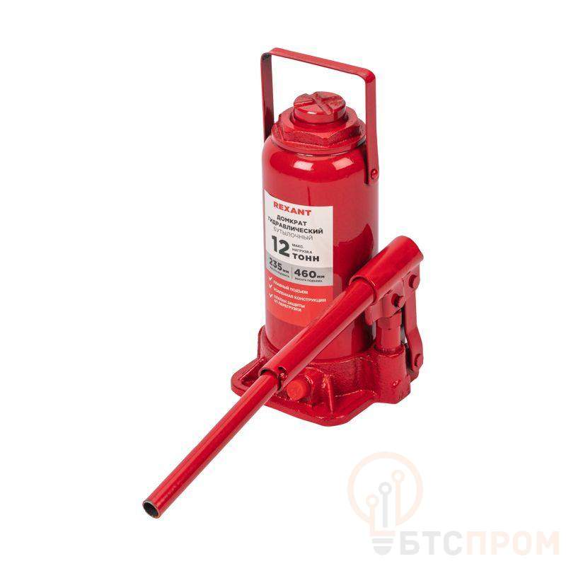 Гидравлический бутылочный домкрат REXANT предназначен для поднятия грузов массой до 12 тонн на высоту до 460 мм. Оптимален для автомобилей с большим клиренсом. Оснащен гидравлической системой, обеспечивающей высокую мощность и надежность. Домкрат станет незаменимым помощником как для автолюбителей, так и для профессионалов на СТО. Отличается плавностью хода, надежностью и жесткостью конструкции. Клапан безопасности предотвращает подъем груза тяжелее 12 т, предохраняя домкрат от поломки. Максимальная нагрузка – 12 т. Высота подхвата – 235 мм. Высота подъема – 460 мм. Материал корпуса – сталь, чугун.