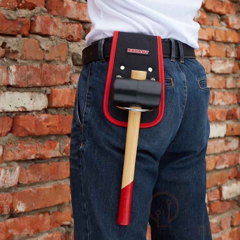 Держатель для молотка REXANT RE-HH с металлической петлей предназначен для его удобного хранения. Предусмотрена прочная тканевая петля для надежной фиксации на ремне. Держатель оптимально подходит для работ на высоте, позволяет оставлять руки свободными. Выполнен из прочного влагонепроницаемого материала: содержимое надежно защищено от механических воздействий и загрязнений. Подходящий ремень: арт. 12-5610. Характеристики: Размеры: 20,5х6,5х13 см Материал: ткань «Оксфорд» 600D PVC PU, сталь Преимущества: Выполнен из прочных долговечных материалов Влагозащищенный материал Металлические части изготовлены из коррозиестойкого металла Металлические заклепки в местах наивысшей нагрузки обеспечивают долгий срок службы