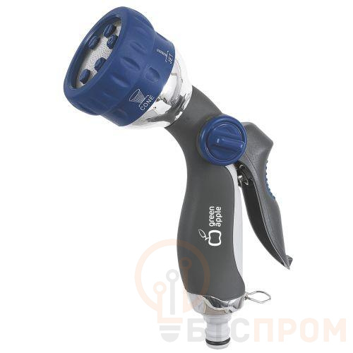 Пистолет-распылитель "Green Apple" предназначен, в зависимости от режима, для решения различных задач по поливу и проведению очистительных работ. Снабжен регулятором изменения интенсивности струи и фиксатором для длительного полива. Он имеет шесть режимов полива: вода может распыляться тонкой водяной пылью, а может подаваться концентрированной струей, с помощью которой можно помыть машину, смыть пыль и строительный мусор. Приятной особенностью распылителя является возможность использования его в качестве насадки для дачного душа. Установив его стационарно, Вы получите эффективную систему орошения для одного конкретного участка площади. Особенности: 6 режимов полива, регулятор напора воды, эргономичная рукоятка c вставкой из термопластичной резины. Материал корпуса: сталь, пластик.