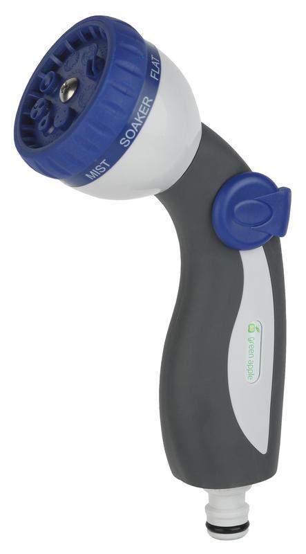 Пистолет-распылитель Green Apple ЕСО GAEP12-03 производится из прочного пластика, устойчивого к деформациям и образованию царапин. Эргономичный дизайн способствует удобному удерживанию насадки в руках. Пистолет представлен в белой, синей и серой расцветке, благодаря чему не затеряется в траве, если вы его оставите на земле. Простая в использовании насадка Green Apple ЕСО GAEP12-03 оснащена регулятором для пуска и перекрывания струи. Обеспечивается герметичное соединение со шлангом. Пистолет не допускает появления протечек и выскакивания из-за сильного напора воды.