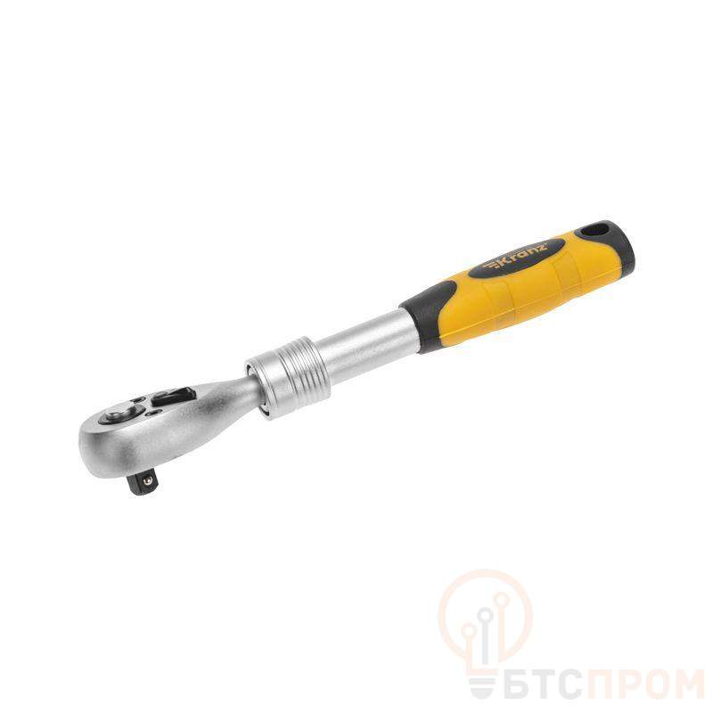 Телескопический хромированный трещоточный ключ KRANZ предназначен для монтажных работ с резьбовыми соединениями. Инструмент оснащен присоединительным квадратом размером 1/4 дюйма, что позволяет подключать различные насадки и головки в зависимости от потребности. Телескопическая рукоятка обеспечивает легкую регулировку длины в диапазоне от 162 до 210 мм, что делает ключ удобным для работы в разных условиях. Механизм фиксации гарантирует надежную блокировку рукоятки на требуемой длине. Двухкомпонентная рукоятка создает комфортное и надежное удержание в руке, что позволяет эффективно передавать усилие и контролировать инструмент во время работы. Изделие выполнено из высококачественной стали CrV. Хромированная отделка придает инструменту привлекательный внешний вид, а также защищает поверхность от коррозии и износа.