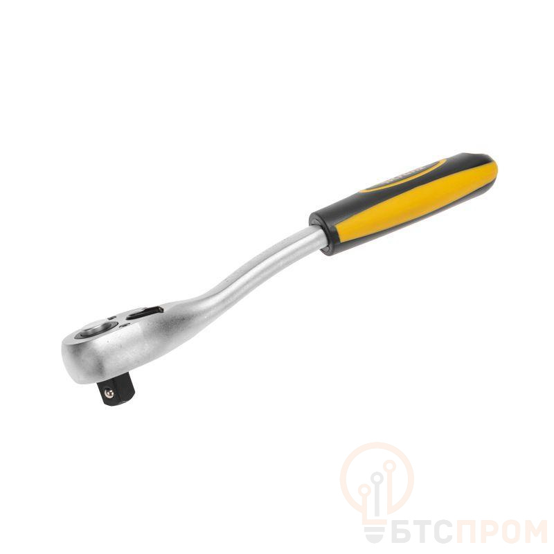 Ключ-трещотка для торцовых головок KRANZ предназначен для закручивания и раскручивания резьбовых соединений. Инструмент обладает высоким рабочим ресурсом. Оснащен цельнометаллическим корпусом с хромированной поверхностью. Изогнутая форма рукоятки создает дополнительное удобство при закручивании и раскручивании соединений, находящихся в труднодоступных местах. Прорезиненная рельефная рукоятка удобно лежит в руке в процессе работ. Инструмент служит для работы с торцевыми головками, которые соединяются при помощи посадочного квадрата 1/2 дюйма с подпружиненным шариковым фиксатором. Длина изделия – 260 мм. Количество зубьев – 72 шт. Материал изготовления – сталь СrV.