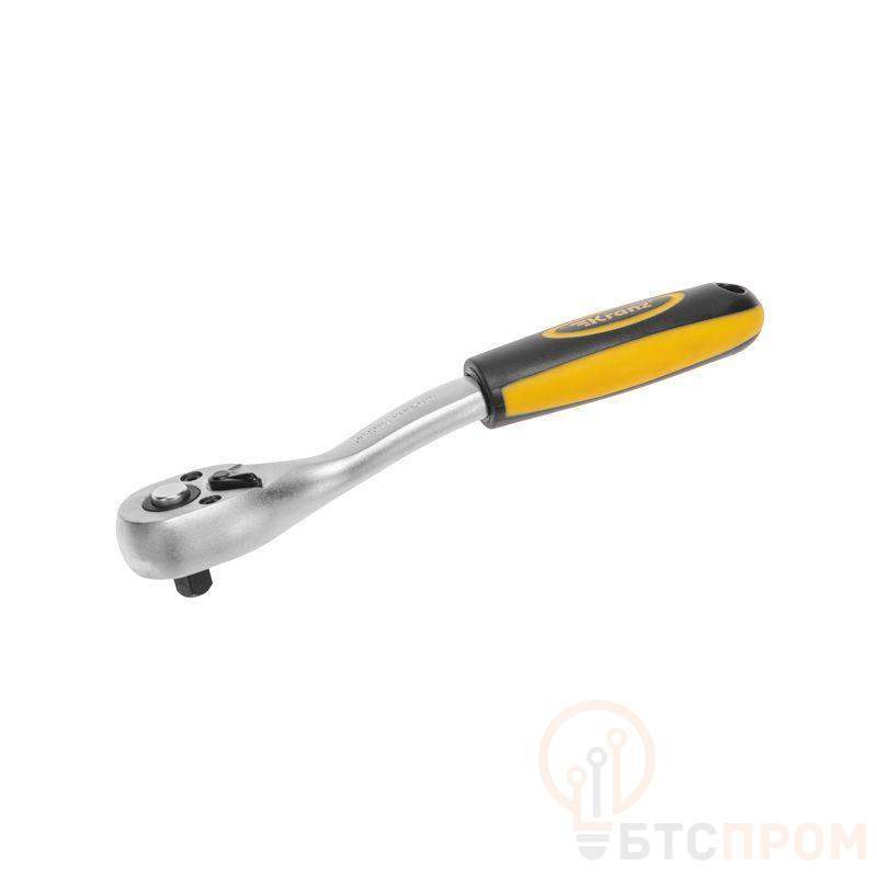 Ключ-трещотка для торцовых головок KRANZ предназначен для закручивания и раскручивания резьбовых соединений. Инструмент обладает высоким рабочим ресурсом. Оснащен цельнометаллическим корпусом с хромированной поверхностью. Изогнутая форма рукоятки создает дополнительное удобство при закручивании и раскручивании соединений, находящихся в труднодоступных местах. Прорезиненная рельефная рукоятка удобно лежит в руке в процессе работ. Инструмент служит для работы с торцевыми головками, которые соединяются при помощи посадочного квадрата 1/4 дюйма с подпружиненным шариковым фиксатором. Длина изделия – 155 мм. Количество зубьев – 72 шт. Материал изготовления – сталь СrV.
