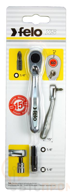 Трещотка с усиленным механизмом высшего качества (>65 нм, 60 зубцов и угол поворота 6°). Прямая фиксация бит в трещетку позволяет работать в труднодоступных местах. Немного изогнутая ручка делает работу более удобной и защищает пальцы рук пользователя от механических повреждений. Материал - хром-ванадиевая сталь Рукоятка под наклоном 15° Угол поворота 6° 60 зубцов, 1/4"""