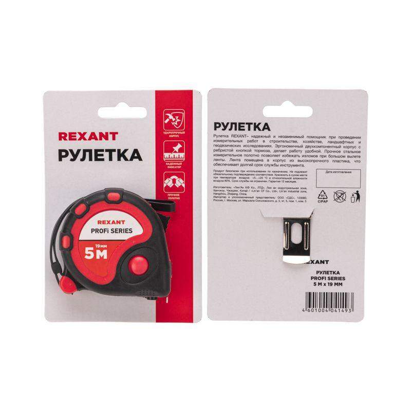 –Рулетка измерительная Профи 5мх19мм прорезиненный корпус Rexant 12-9005