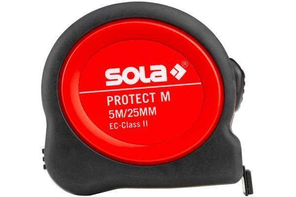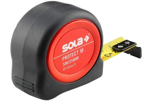 Рулетка Protect M PE 525, L=5 м, магнитная, 25 мм, II класс SOLA 50570601 предназначена для проведения замеров расстояния или длин предметов, поверхностей и имеет II класс точности. Корпус рулетки Popular PP изготовлен из ударопрочного 2-компонентного пластика и оснащен удобной кнопкой стопора. Рулетка оснащена амортиззирующими стопорными элементами, обеспечивающими мягкую остановку ленты, а также антивибрационную систему втягивания ленты для сохранения безупречных характеристик рулетки на протяжении всего срока службы. Точный ленточный стопор не допускает расшатывания и втягивания ленты, обеспечивая наивысшую фиксацию ленты и точность измерения. Лента 25 мм из нержавеющей стали имеет матовое покрытие для легкого считывания показаний даже при ярком свете. Магнитный концевой крючок ленты имеет выемку для маркировки поверхности и паз для шляпки винтов.