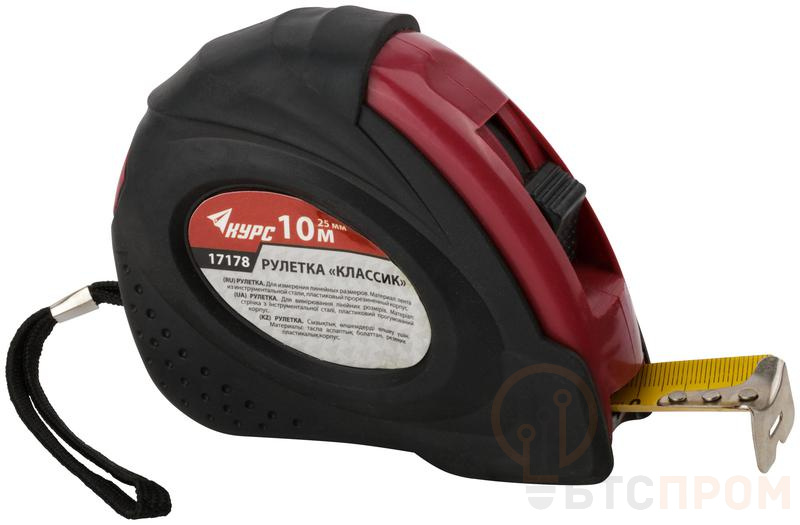 Рулетка Классик 10мх25мм прорезиненный корпус КУРС 17178 фото в каталоге от BTSprom.by