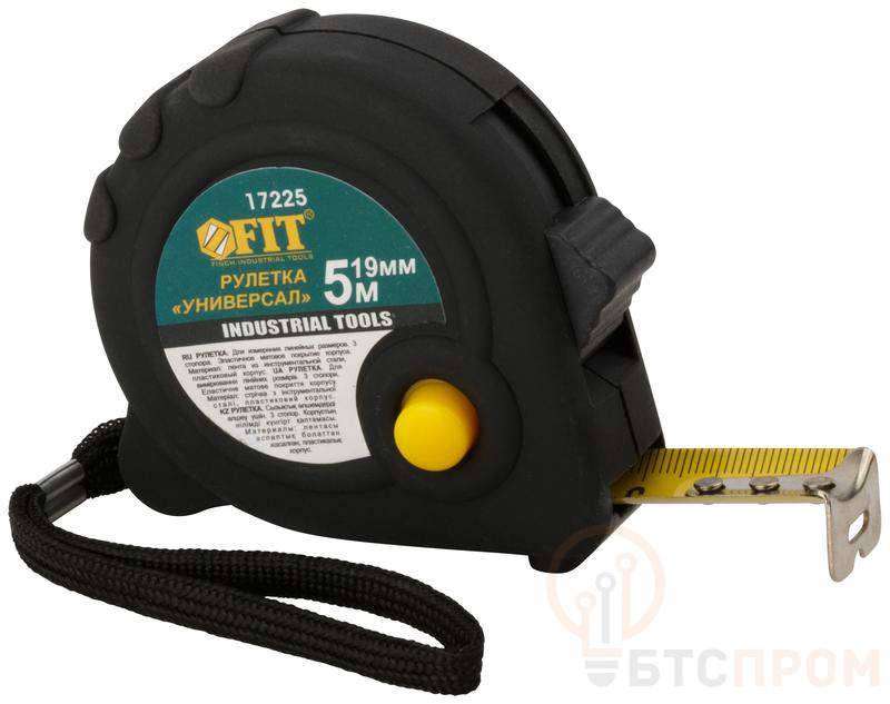 Рулетка Универсал 5мх19мм прорезиненный корпус тройн. стопор FIT 17225 фото в каталоге от BTSprom.by