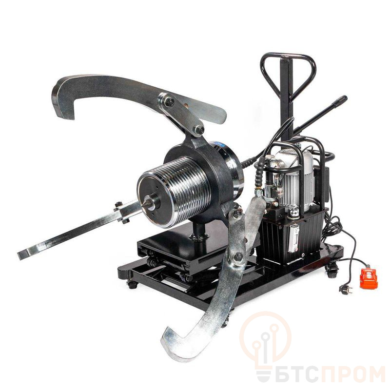 • Транспортировочная тележка из прочного стального профиля на колесных опорах и гидравлическим подъемником для регулировки высоты съемника