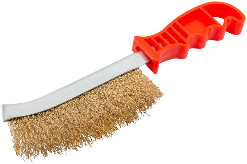 Корщетка ручная КУРС предназначена для снятия старой краски, окислов, ржавчины и загрязнений. Стальная волнистая проволока обладает высокой износостойкостью. Латунное покрытие щетины выполняет антикоррозионную защиту, повышает прочность металла. Кроме того, поверхность, обработанная латунью, долго не окисляется. Эргономичная форма рукоятки обеспечивает надежный хват. Отверстие в рукоятке дает возможность хранить щетку в подвешенном положении.