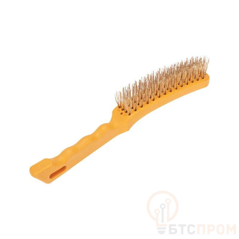 Ручная щетка используется для зачистки металлических, деревянных и других поверхностей от загрязнений, ржавчины и старых лакокрасочных покрытий. Применяется во время строительных и ремонтных работ, оптимально подходит для бытового использования. Пучки прямой проволоки расположены в 4 ряда, что создает более плотный контакт с материалом, повышая производительность. Щетина надежно закреплена в основании и не выпадает во время работы. Латунированное покрытие значительно продлевает срок службы щетки. Эргономичная рукоятка, изготовленная из высококачественного пластика, обеспечивает хороший захват и удобство в работе.