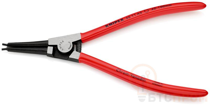 Щипцы для внешних стопорных колец прямые губки посадочный размер d 40-100мм диаметр наконечников d 44257мм L-210мм Cr-V Knipex KN-4611A3SB