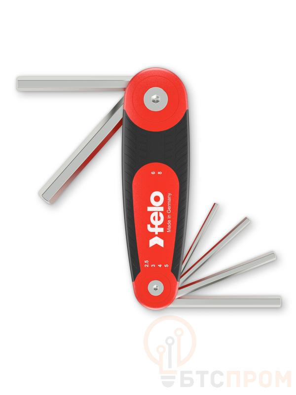Универсальный раскладной набор шестигранных ключей Felo предназначен для работы с крепежом, в шляпках которых имеется углубление в форме шестиугольника. Набор имеет компактную складную конструкцию, благодаря чему его удобно переносить и хранить. Шестигранные ключи распространен в бытовой и профессиональной сфере, поэтому они должны быть в каждом доме и под рукой у каждого мастера. Инструмент выполнен из высоколегированной (CrMoV) закаленной стали, прочность и износостойкость которой превышает значения европейских стандартов DIN ISO. Страна производства - Германия. Гарантия 15 лет. Состав набора: Размеры: 2,5мм / 3,0мм / 4,0мм / 5,0мм / 6,0мм / 8,0мм.