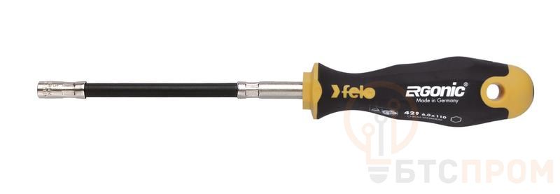 Отвертка серии 400 ERGONIC благодаря своей эогономичной рукоятке, идеально адаптируется под руку любого пользователя. Гладкая бесшовная ручка без шва настолько удобна, что обеспечивает максимальный комфорт в работе. Шестигранная гайка под ключ между рукояткой и стержнем позволяет прикладывать дополнительное усилие при работе. Дизайн рукоятки не позволяет инструменту скатываться с любой поверхности. Хром-молибден-ванадиевый стальной стержень прошёл закалку в масле. Тип наконечника расположен на верхней части рукоятки. Износостойкость превышает технические требования DIN и ISO более, чем на 100 %. Рукоятка произведена из устойчивого эластомера. Удобство материала рукоятки отвёртки позволяет при меньших усилиях пользователя контролировать вращающий момент. Имеется гибкое жало для работы в труднодоступных местах