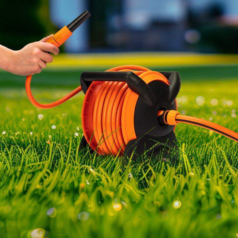 Поливочный шланг с катушкой – это удобное и практичное решение для полива газонов, клумб, растений и почвы на садово-огородных участках. Благодаря катушке шланг легко сматывать и разматывать, что значительно облегчает процесс полива, а также обеспечивает удобство при хранении и транспортировке. Размещение шланга на катушке позволяет защитить его от изломов и перегибов. Катушка изготовлена из качественного и прочного полипропилена, устойчивого к воздействию внешних факторов. Шланг длиной 15 м и диаметром 1/2 дюйма обладает высокой прочностью и гибкостью. В комплекте поставляются 3 коннектора и 1 распылитель. Коннекторы позволяют подключать к шлангу различные типы насадок, а распылитель обеспечивает удобство для полива цветов, кустарников и других растений, требующих особого ухода.