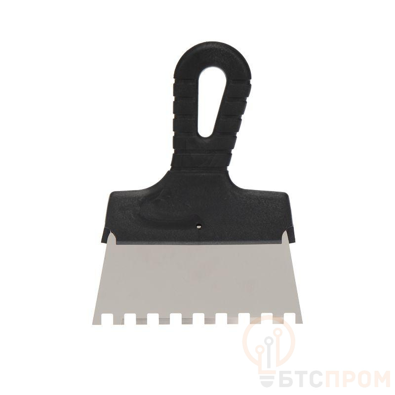 Фасадный шпатель REXANT предназначен для отделки поверхностей внутри и снаружи помещений. Используется для нанесения и выравнивания по поверхностям штукатурки, шпатлевки и других строительных растворов, заделки трещин и швов. В зависимости от предстоящих работ и их объемов, вы легко подберете инструмент с подходящими параметрами. Фасадный шпатель оснащен эргономичной пластмассовой ручкой с рифлением, которая обеспечивает надежный хват инструмента при использовании, в том числе, в грубых строительных перчатках. Основной рабочей частью инструмента является стальное полотно, поэтому для производства шпателей REXANT используется нержавеющая высоконагартованная сталь (1500 н/мм) марки AISI 201 толщиной 0,42 мм. Сталь данной марки обладает улучшенными механическими свойствами, исключающими деформацию полотна в процессе работы. Технические характеристики: Материал рукоятки: пластик Материал рабочего полотна: нержавеющая сталь Ширина рабочего полотна: 150 мм Высота рабочего полотна: 57 мм Толщина рабочего полотна: 0,42 мм Размер зубчика (ШхВ): 8х8 мм Марка стали: высоконагартованная (1500 н/мм) Отверстие для подвеса: есть
