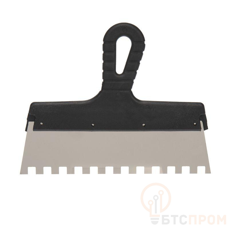 Фасадный шпатель REXANT предназначен для отделки поверхностей внутри и снаружи помещений. Используется для нанесения и выравнивания по поверхностям штукатурки, шпатлевки и других строительных растворов, заделки трещин и швов. В зависимости от предстоящих работ и их объемов, вы легко подберете инструмент с подходящими параметрами. Фасадный шпатель оснащен эргономичной пластмассовой ручкой с рифлением, которая обеспечивает надежный хват инструмента при использовании, в том числе, в грубых строительных перчатках. Основной рабочей частью инструмента является стальное полотно, поэтому для производства шпателей REXANT используется нержавеющая высоконагартованная сталь (1500 н/мм) марки AISI 201 толщиной 0,42 мм. Сталь данной марки обладает улучшенными механическими свойствами, исключающими деформацию полотна в процессе работы. Технические характеристики: Материал рукоятки: пластик Материал рабочего полотна: нержавеющая сталь Ширина рабочего полотна: 250 мм Высота рабочего полотна: 58 мм Толщина рабочего полотна: 0,42 мм Размер зубчика (ШхВ): 10х10 мм Марка стали: высоконагартованная (1500 н/мм) Отверстие для подвеса: есть